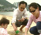 Kam-chung and his wife, Fu Mingxia, play with their daughter on the beach. SCMP