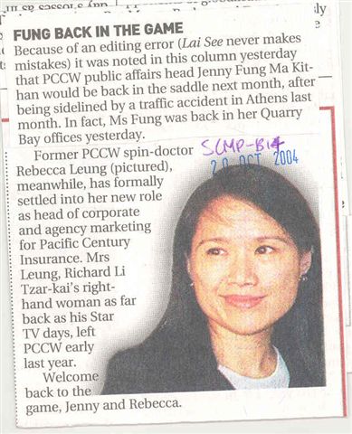 Rebecca’s book for Ming Pao press was released in September 2003. She is