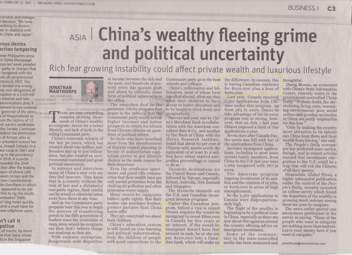 cent of homes of more than C$2 million were sold to Chinese buyers in