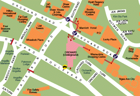 Atria and Lucky Plaza. Vehicular access is by Orchard Turn and Orchard
