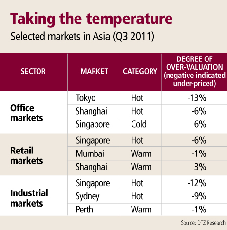 in South- east Asia, China and Japan at the end of 2011, compared with