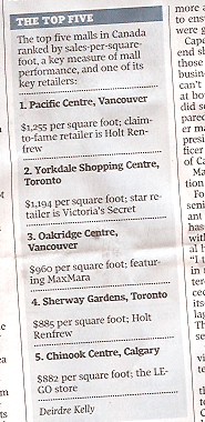 in Victoria; Pacific Centre in Vancouver; Polo Park in Winnipeg; and Rideau