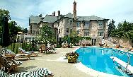 shore of Lake Ontario in 14 acres. The house has nine bedrooms, 17