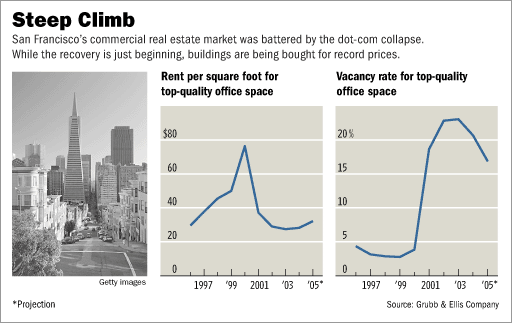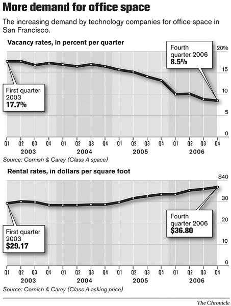 In San Francisco, a quarter of all office space leased in 2006 went to