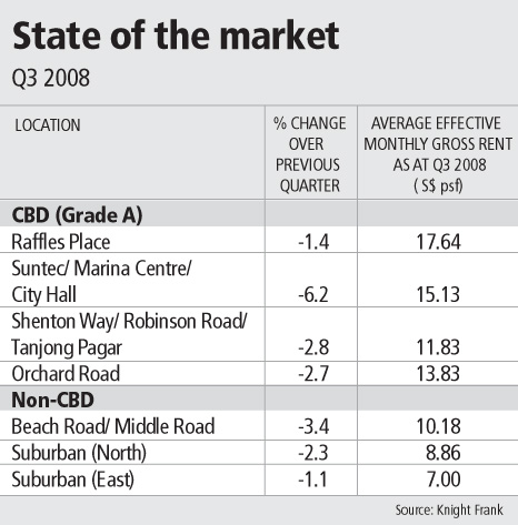 falling 5 per cent quarter-on-quarter in Q3 to $5.70 psf a month, plumbing