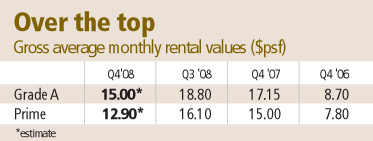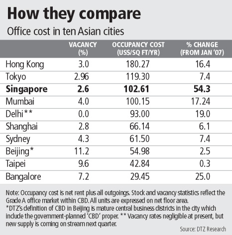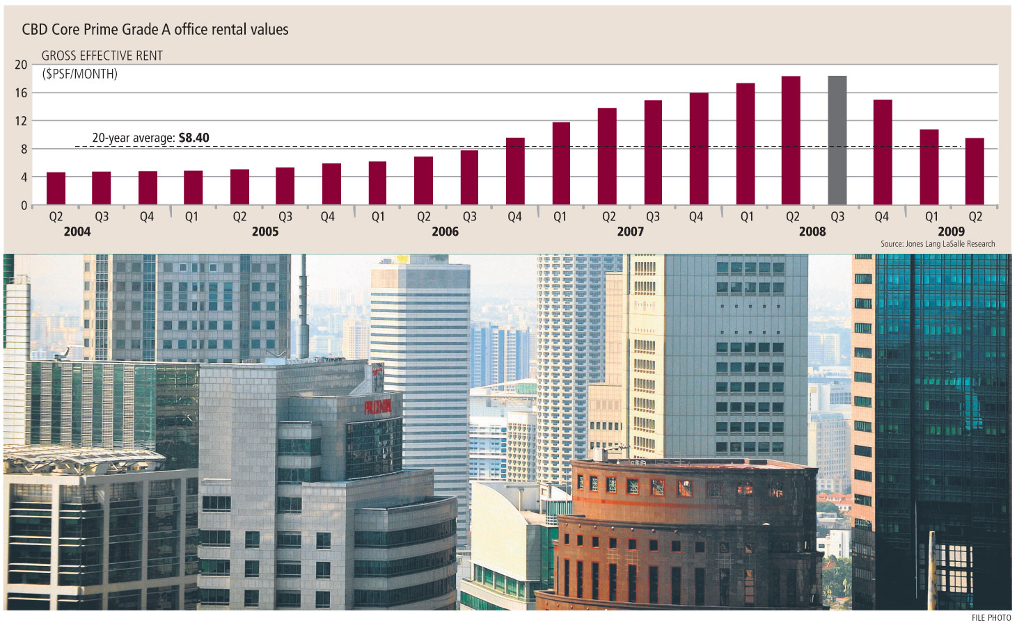 prime Grade A office rental rate in Raffles Place is now the second lowest