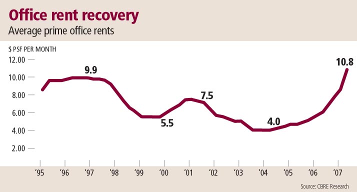 in the past decade, slightly above the $5.60 psf a month seen in the second