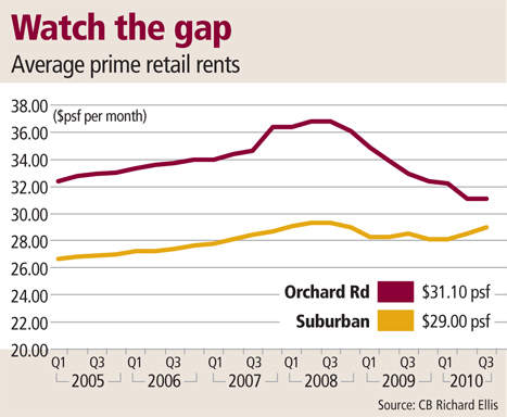 pressure from all the new shop space on Orchard Road, rents for ground floor