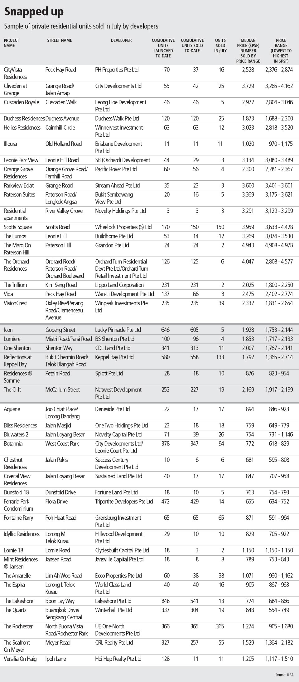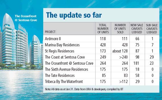 yet to be sold units as at end-June were: KepLand's Caribbean at Keppel Bay (664
