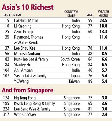 Teck Puat (who died in 2004) is second, with a total net worth of US$5.9